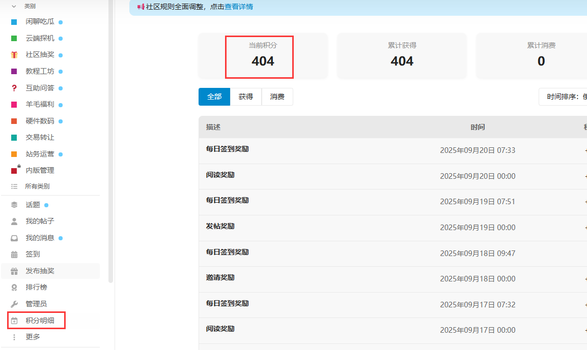 我死活找不到哪里能看到自己的积分。请各位解答一下。谢谢!