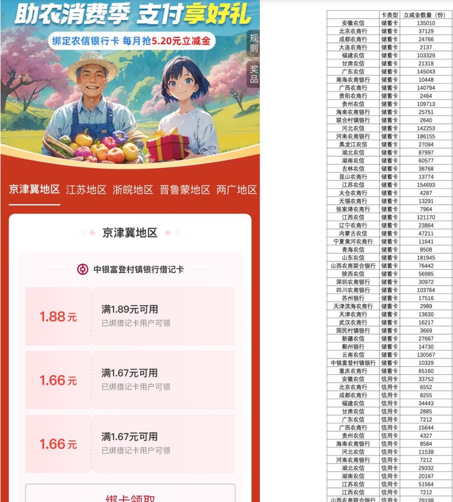 支付宝搜索“农信日”->有农信的可以领自己对应地区的消费红包,每个月都可以领