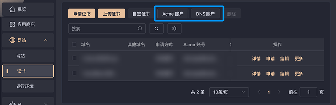 配置好Acme账户和DNS账户