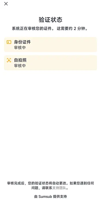 整个KYC流程大概仅两分钟,就是上传SFZ的正反面然后活体检测就OK,审核也很快