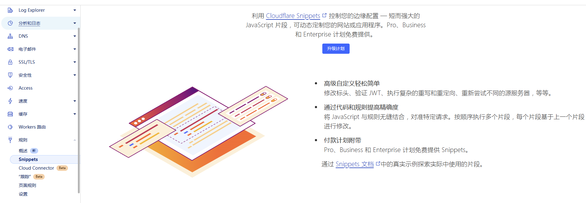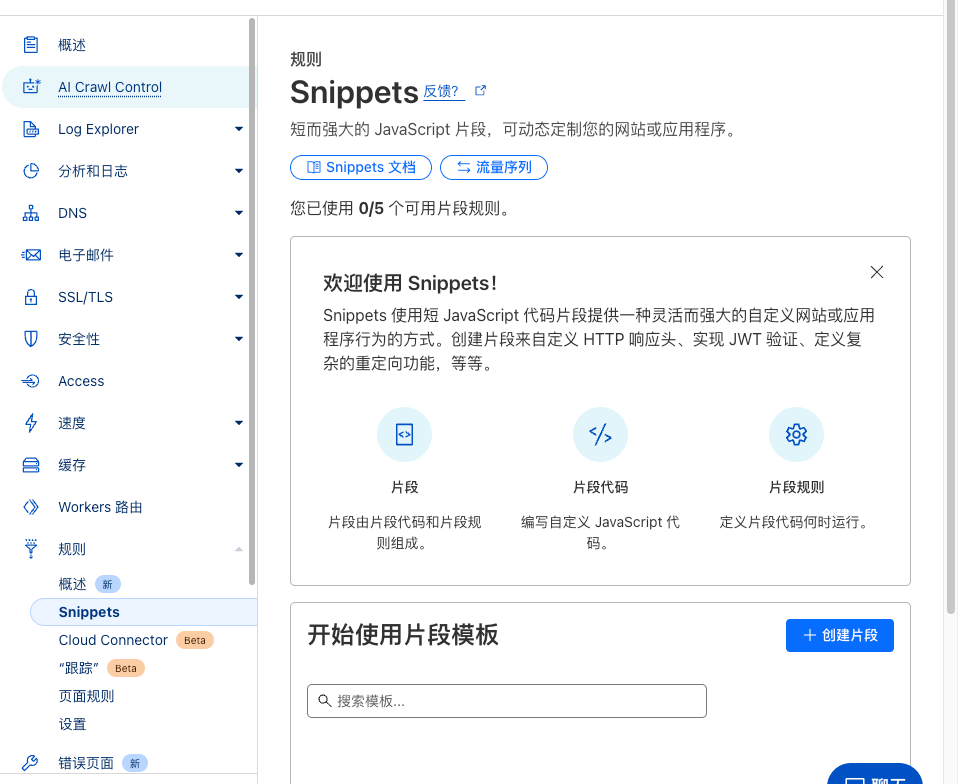 Snippets”(片段)是 Cloudflare 在其 Rules / 边缘流量处理能力基础上新增的一种轻量级可编程功能。