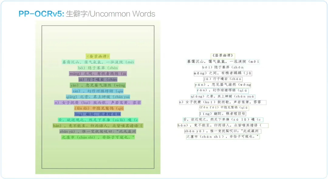 PP-OCRv5 现已全面支持 42 种语言识别,较上一代模型实现了跨越式升级。其识别场景广泛覆盖印刷体、手写体、通用文本、拼音、古籍、生僻字等多个高难度领域,并在识别精度上实现全方位显著提升,重新定义了多语种OCR的技术标杆。