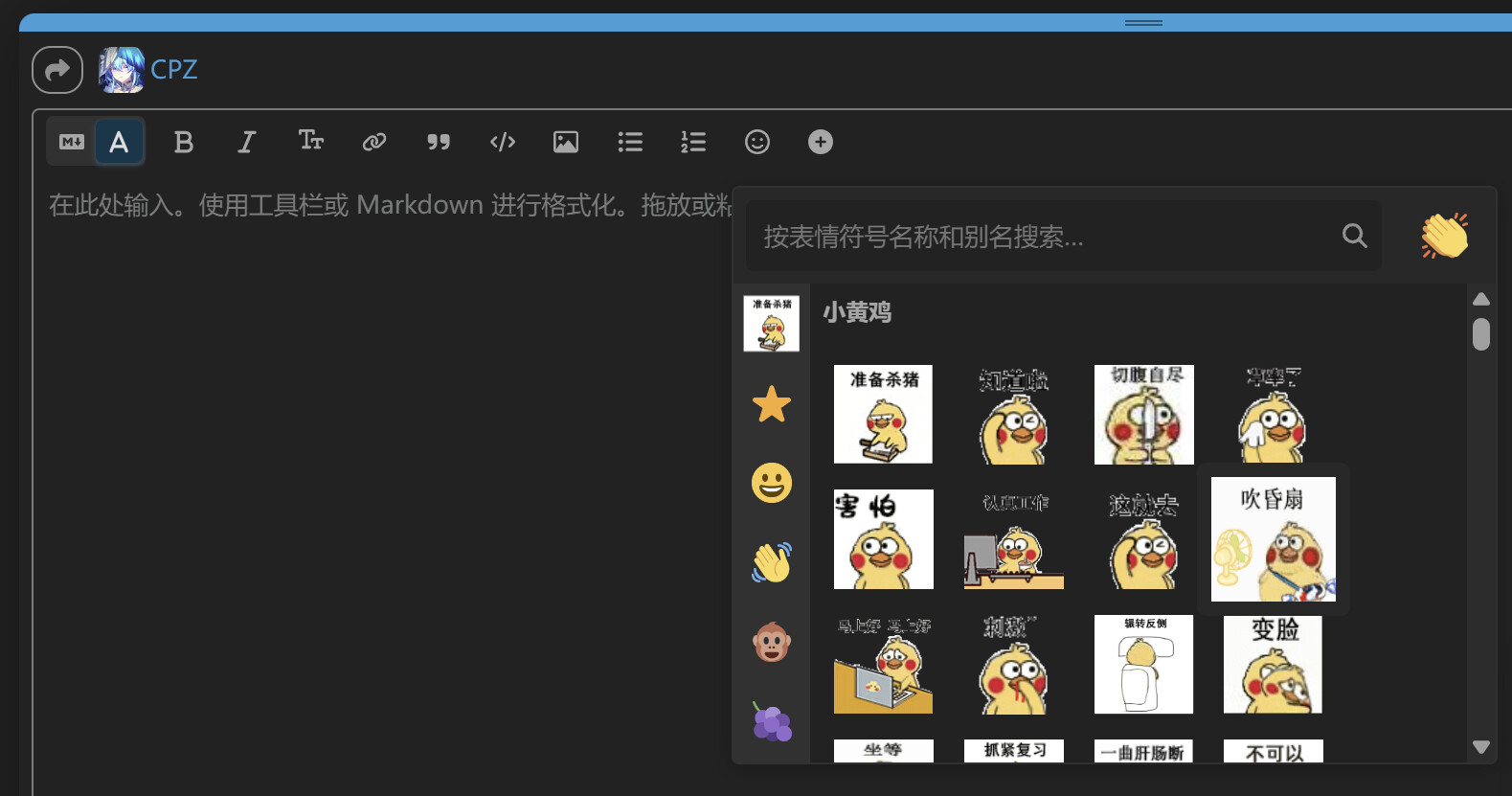 搞到一个插件,MjjBox网站小黄鸡表情排列首位+放大油猴插件,效果如图,有兴趣的可以试试。