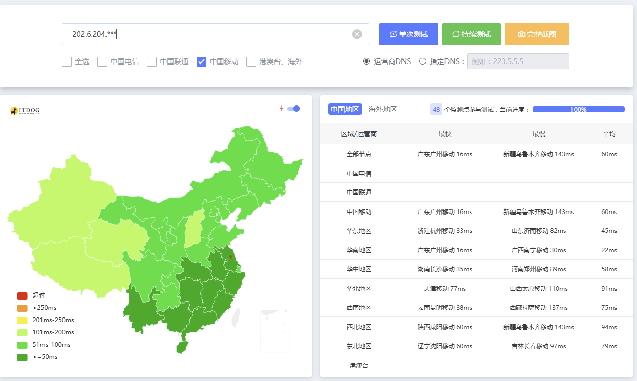 这个点北方移动200+ms,南边40ms以下,差距咋这么大咧