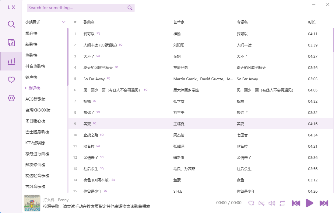 这个界面挺好的,就是好多都没有音源啊,不知道在哪儿去弄,基本上歌曲都听不了