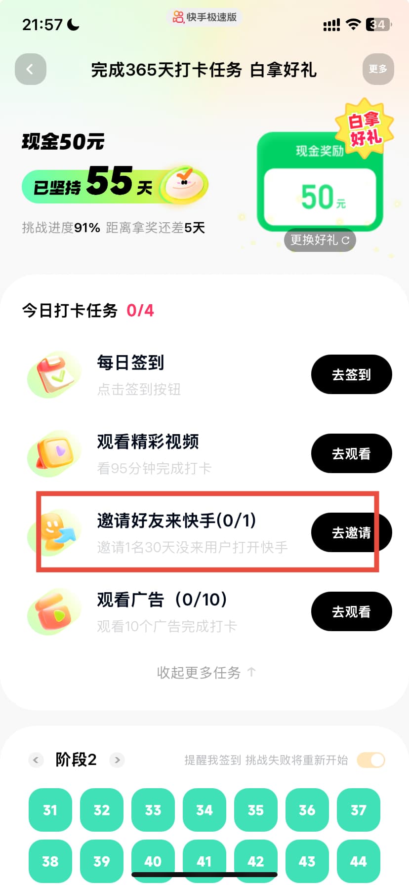 打卡60天,50元现金,今天开始要拉人了。不敢想像,那些打卡365天拿手机的,要拉多少个人