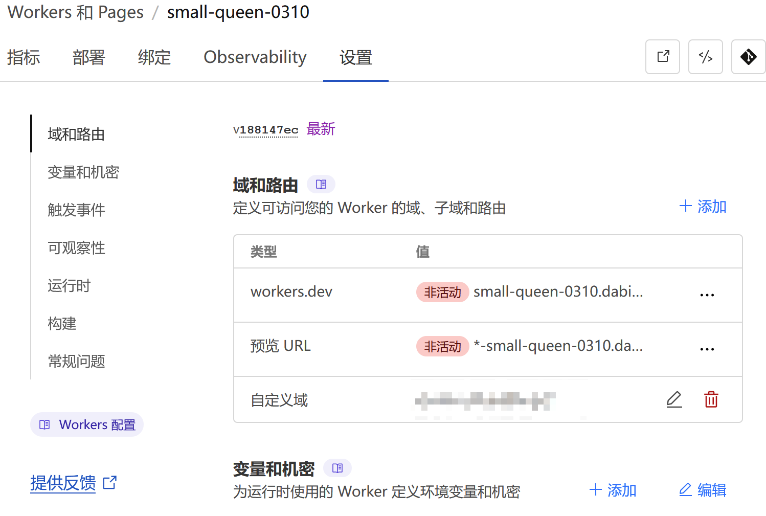 在worker设置 设置自定义域,关闭workers.dev CF分配给你的域,避免被扫到