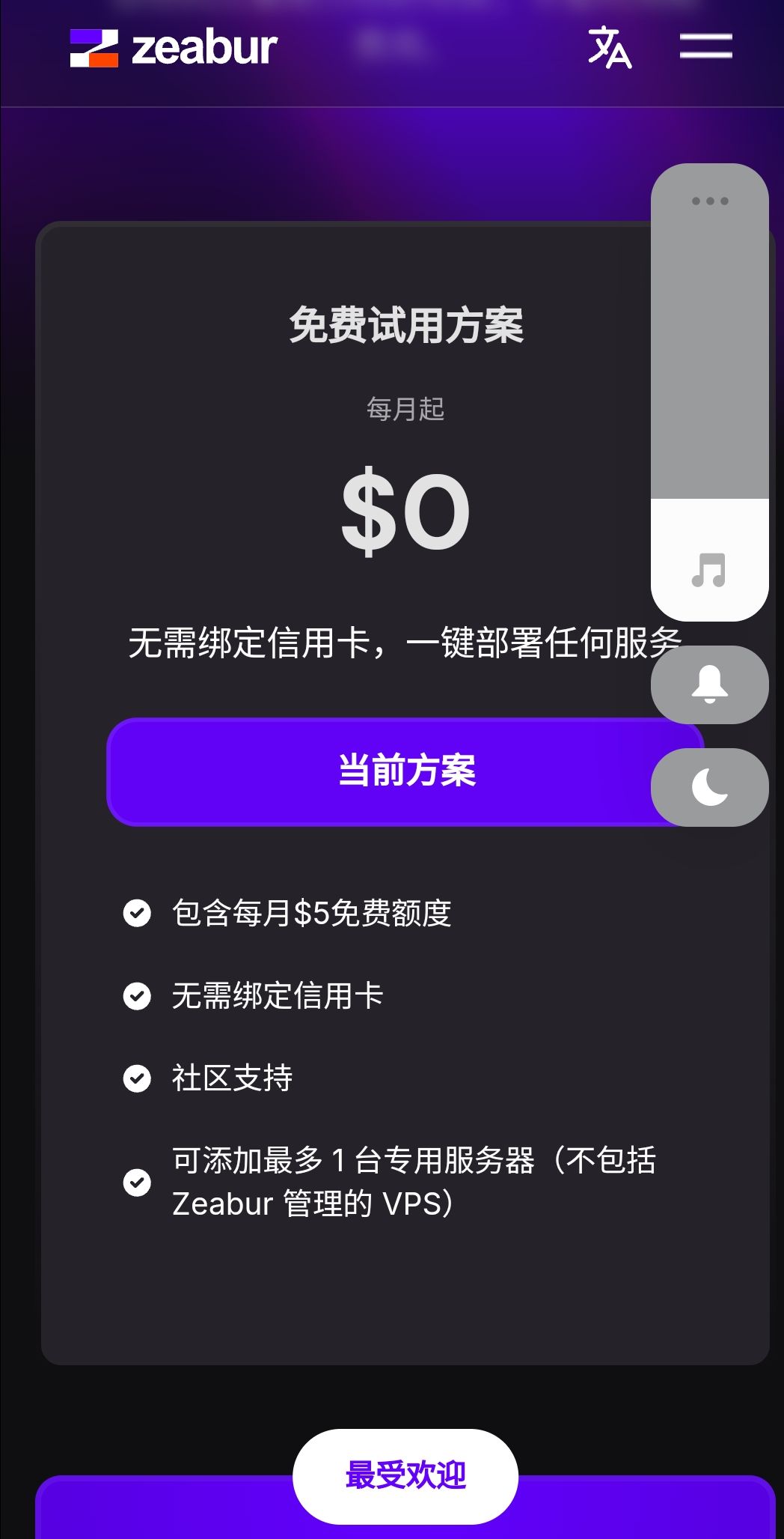 邀请链接:https://zeabur.com/referral?referralCode=bye1158 PS:貌似需要绑个手机或者虚拟卡才可以用,其他自测吧。