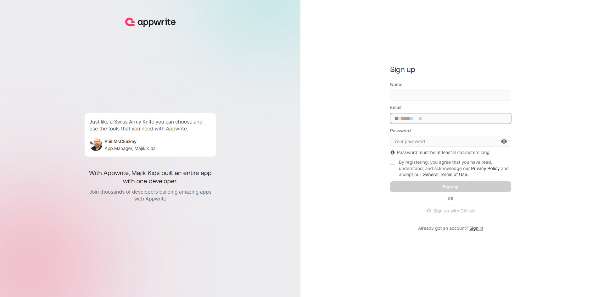 1、首先打开AppWrite的官网 https://cloud.appwrite.io 注册账号