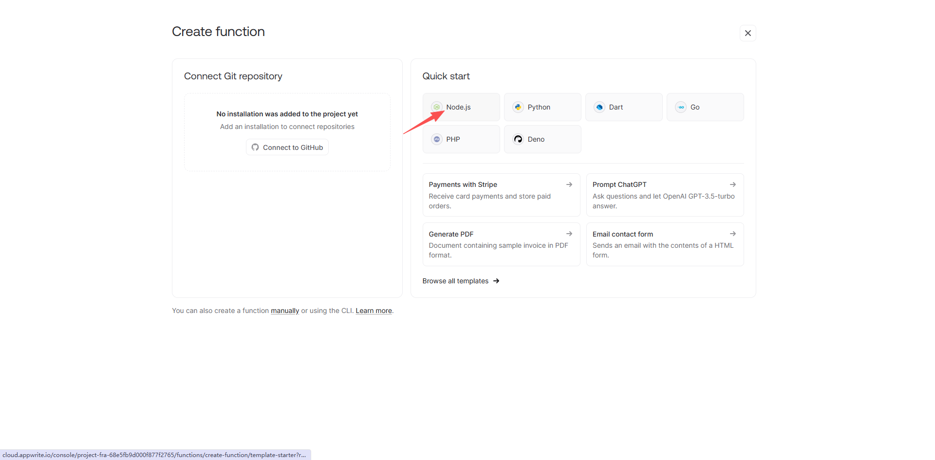 4、选择nodejs语言项目