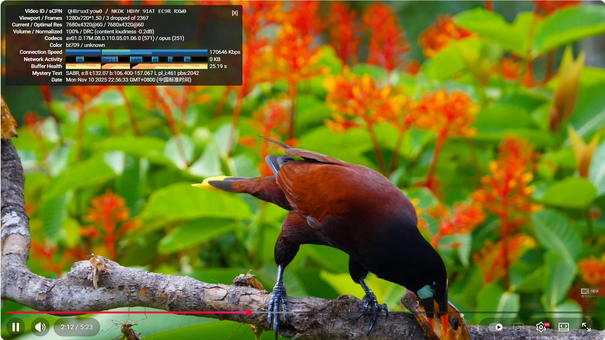 抽了无数次奖,今天终于有幸中了黄金小鸡-Easylink优化线路一台,赶紧实测一下油管8k60帧视频,实测晚上10点多速度最快在17w左右,给大家截个图看看,大家觉得这个速度如何~