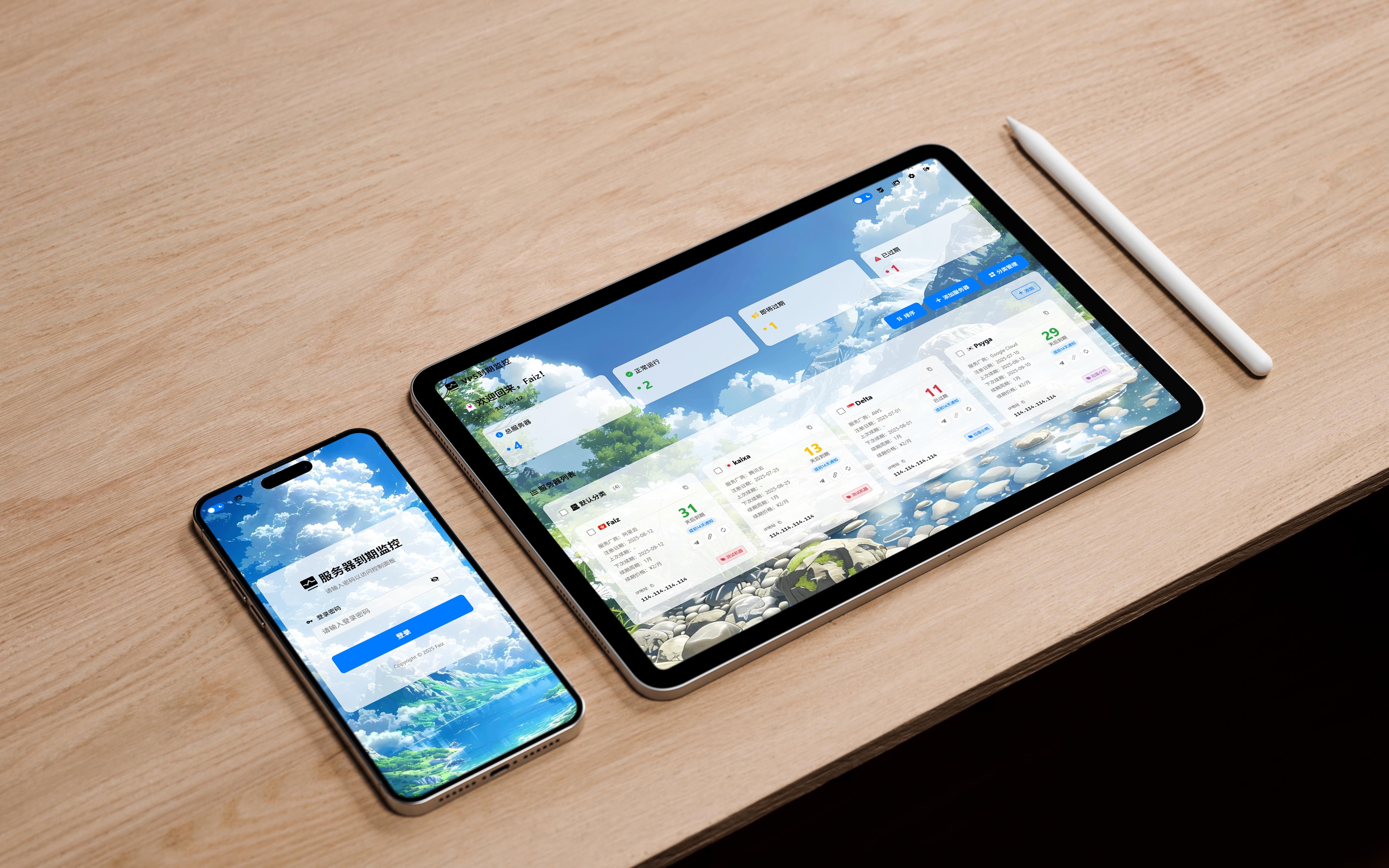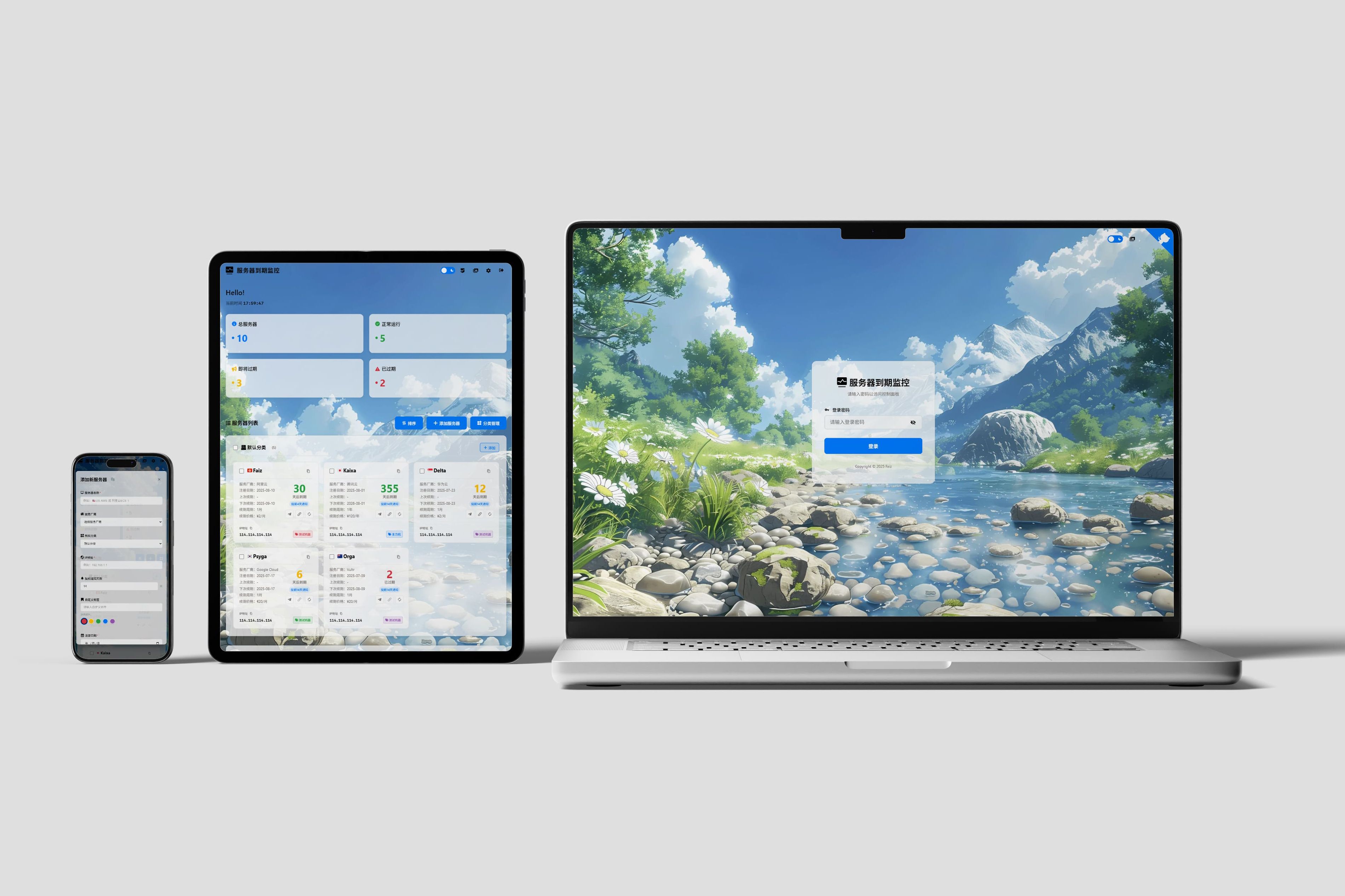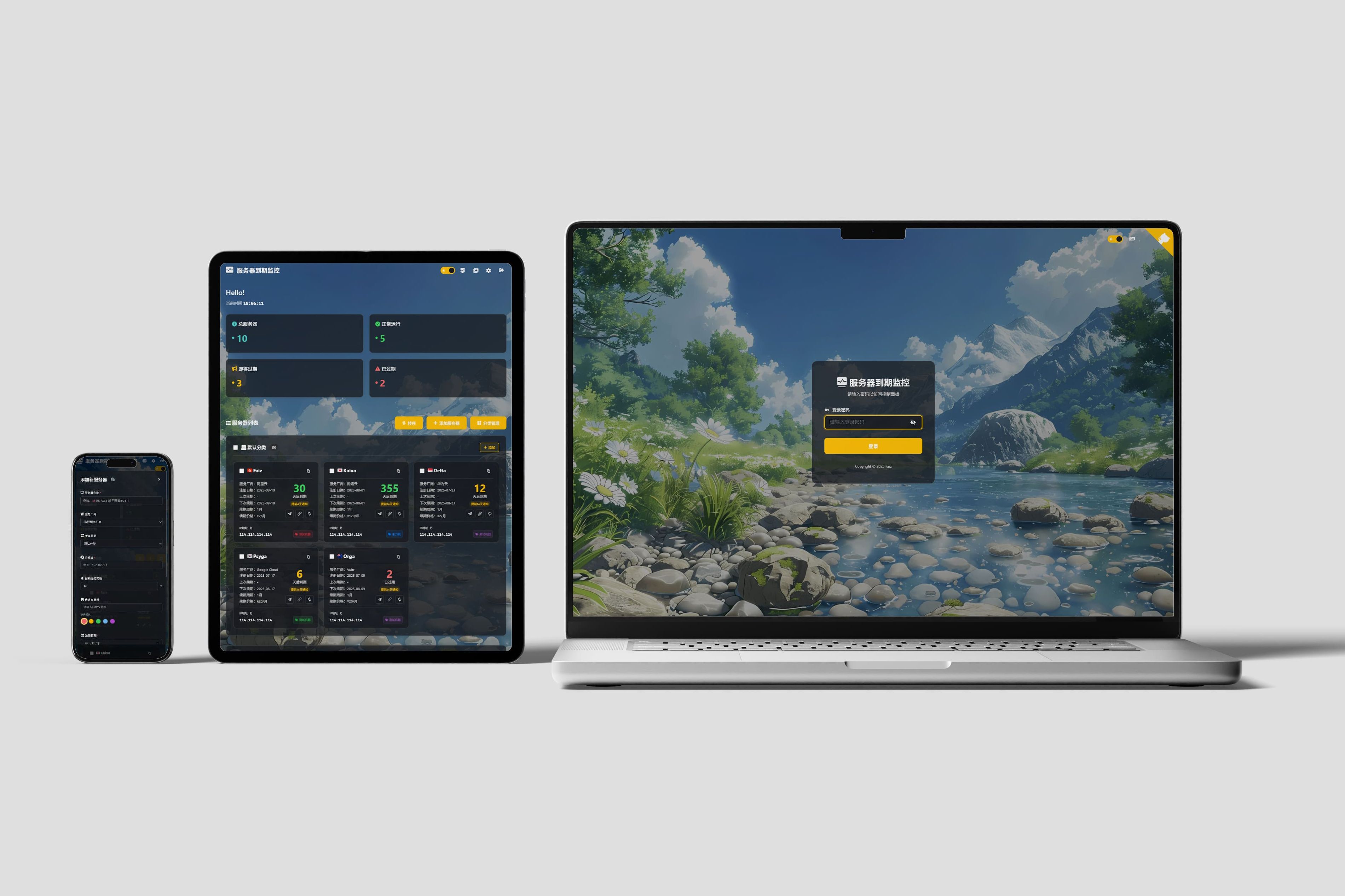 服务器到期监控、telegram自动通知、背景图更换、主题切换