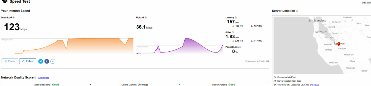 0.41 ms AS7203 美国 加利福尼亚州 圣何塞 leaseweb.com