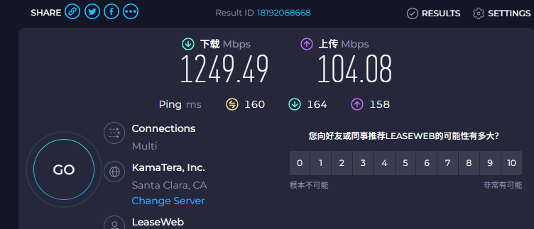 0.84 ms AS7203 美国 加利福尼亚 洛杉矶 leaseweb.com
