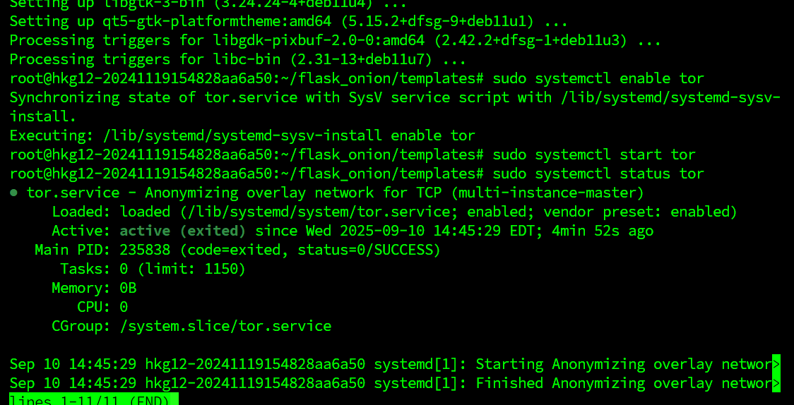 接下来我们需要配置 Tor Hidden Service 安装并设置开机自动启动