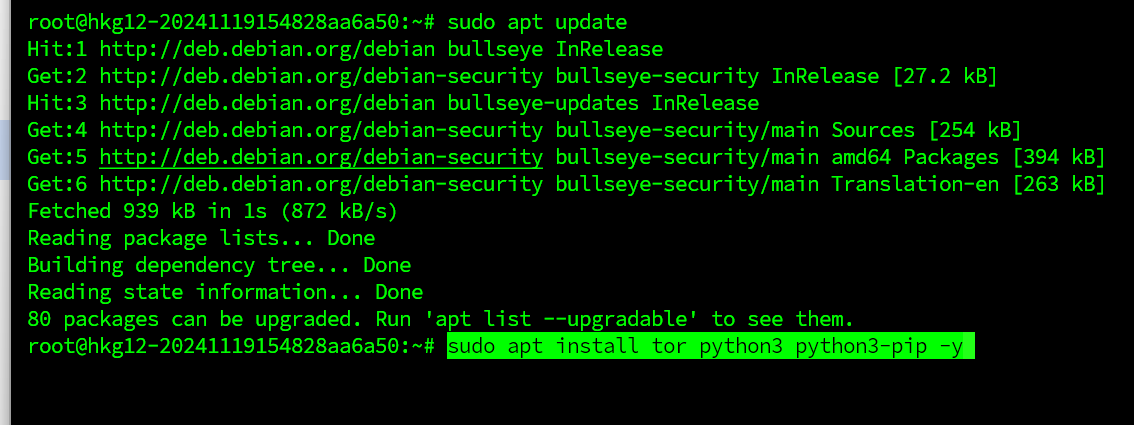 sudo apt install tor python3 python3-pip -y